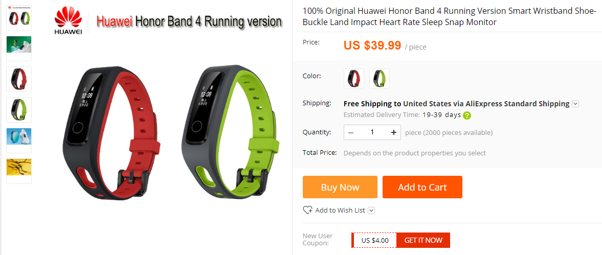 Вчера в сети появились живые фотографии умного браслета Honor Band 4, чей анонс ещё только ожидается. Теперь новинка появилась в онлайн-магазине AliExpress.