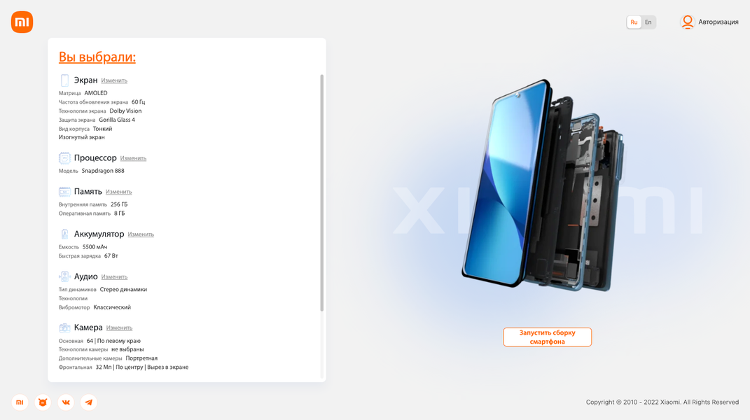 Конструктор Xiaomi Dreams 2.0 позволяет «поиграть» со всеми основными характеристиками и учесть дополнительные пожелания.