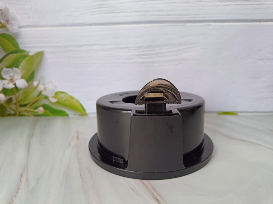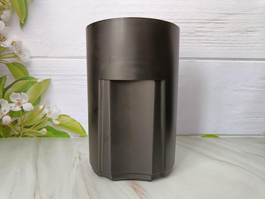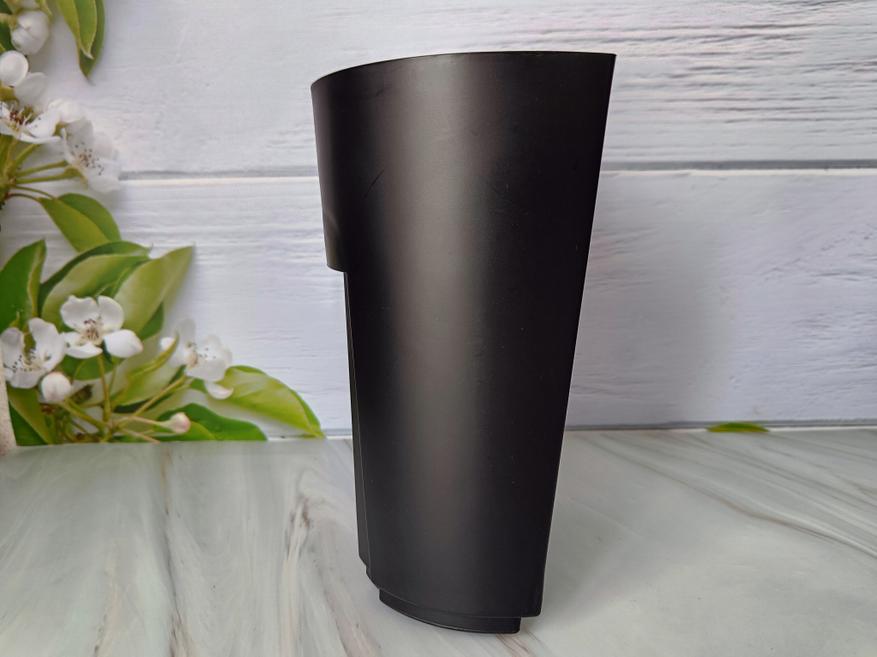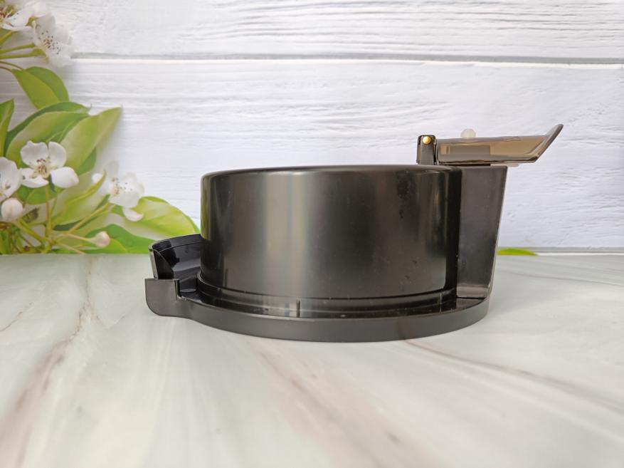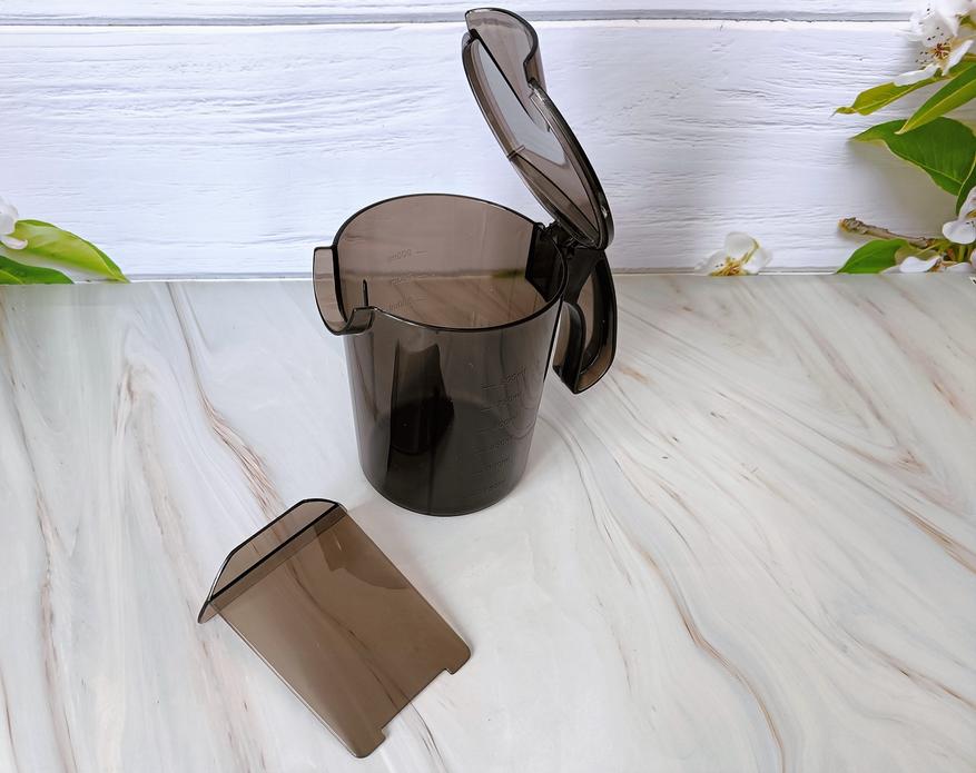 Контейнер для жмыха из черного пластика, повторяет форму корпуса соковыжималки, чтобы органично вписываться в общий стиль прибора.