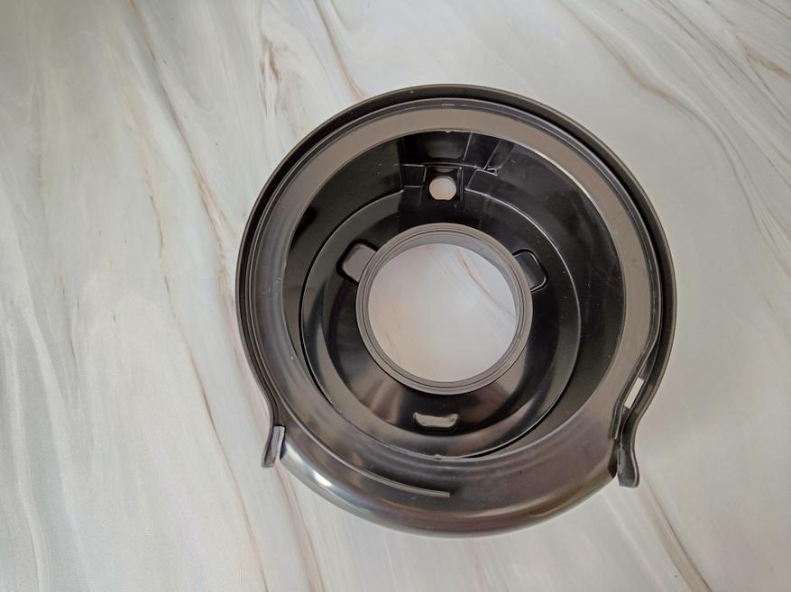 После извлечения фильтра снимаем отсек для отведения сока в носик и видим рабочий передаточный механизм соковыжималки из пластика.