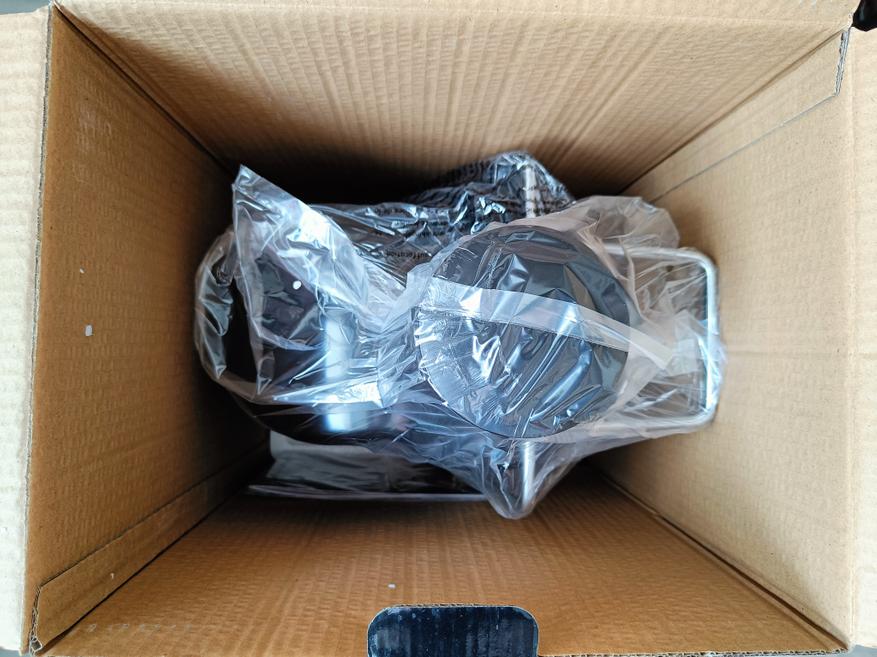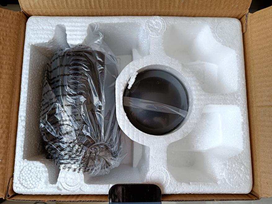 Открываем коробку и убеждаемся, что проверенный производитель бытовой техники постарался, чтобы защитить устройство. На защиту призваны большие пенопластовые формы, которые буквально обнимают соковыжималку, плюс ее внешний вид сохраняет полиэтиленовый пакет.