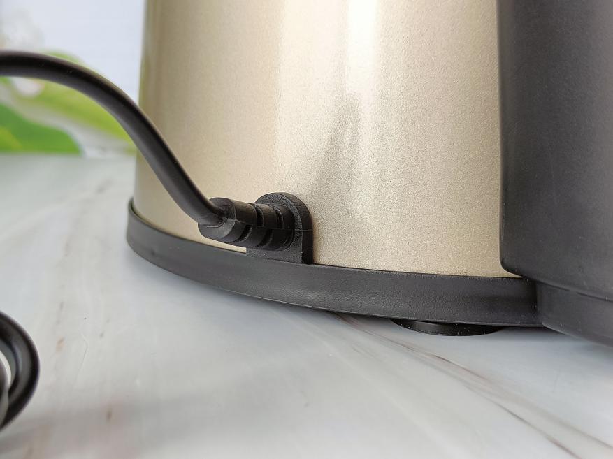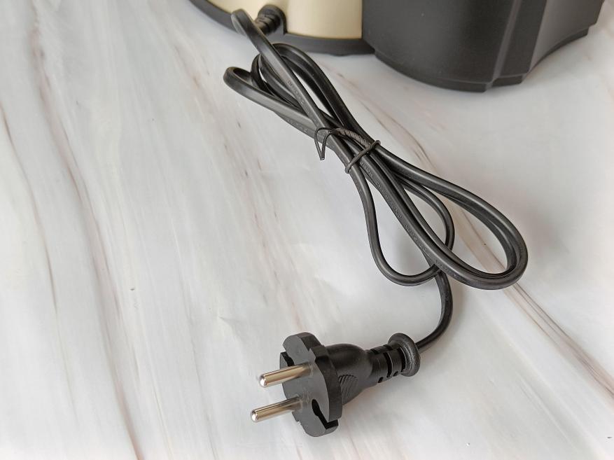 Сзади корпуса соковыжималки входит  сетевой кабель длиной 1,2 метра с евровилкой без заземления.