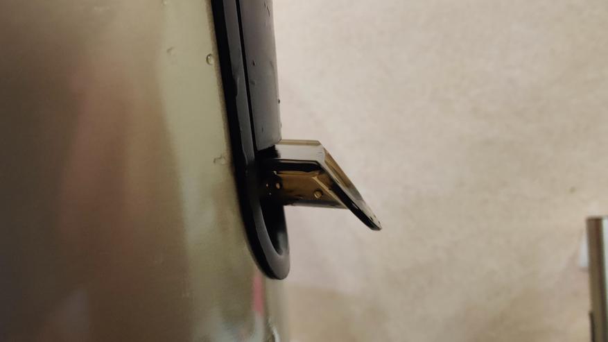 Носик снабжен системой антикапля. После процесса отжима поднимаем его в верхнее положение. Он меняет положение с характерным щелчком. И сок не вытекает не просто, потому что носик поднят вверх, а потому что отверстие вывода сока закрывается силиконовым клапаном.