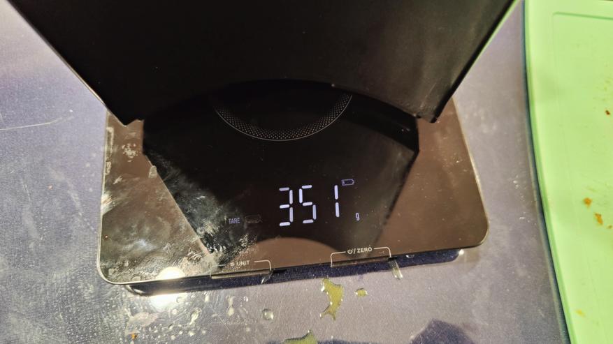 Для понимания эффективности замерим вес продуктов на входе, и объем сока на выходе.