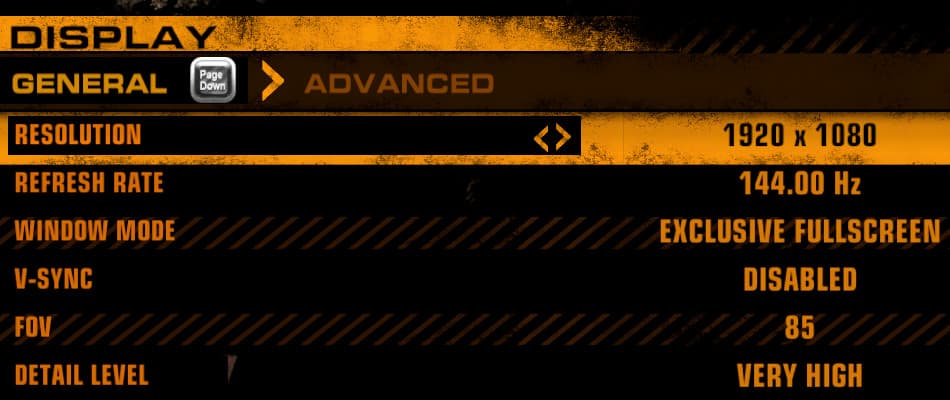 В основном меню графических настроек есть лишь самое важное: выбор разрешения экрана и частоты обновления, выбор полноэкранного или оконного режима вывода изображения, возможность включения вертикальной синхронизации и даже выбор угла обзора (FOV — Field of View).