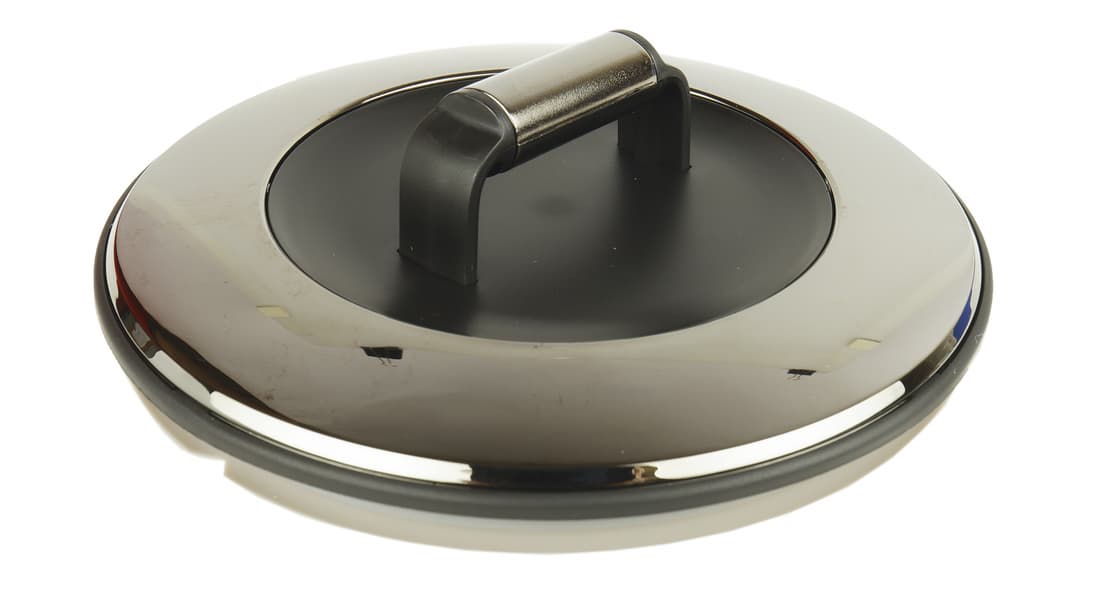 Крышка чайника не имеет никаких креплений и полностью снимается с корпуса. Она достаточно плотно вставляется в колбу за счет силиконового уплотнителя. Сверху и снизу у крышки металлические поверхности, ручка достаточно удобная.