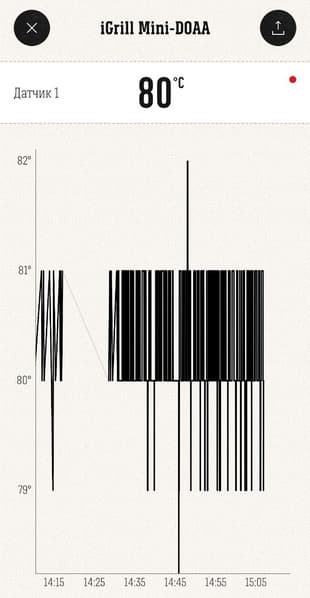 График температуры в режиме поддержания 80 °C выглядит следующим образом (с точностью до градуса, как измеряет термощуп):