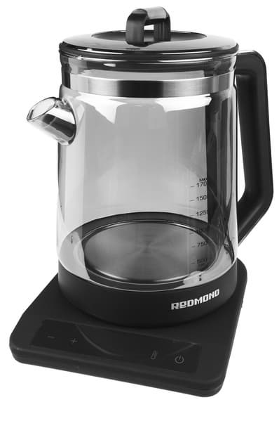 Корпус Redmond RK-G1310D — единая стеклянная колба с носиком, дизайном отдаленно напоминающая эмалированные кувшины и молочники прошлого века. Но благодаря лаконичности, сочетанию термостойкого затемненного стекла и хромированных деталей, прибор гармонично впишется в интерьер любой современной кухни. Затемнение стекла делает чайник блестящим непрозрачным или полупрозрачным в зависимости от угла зрения.