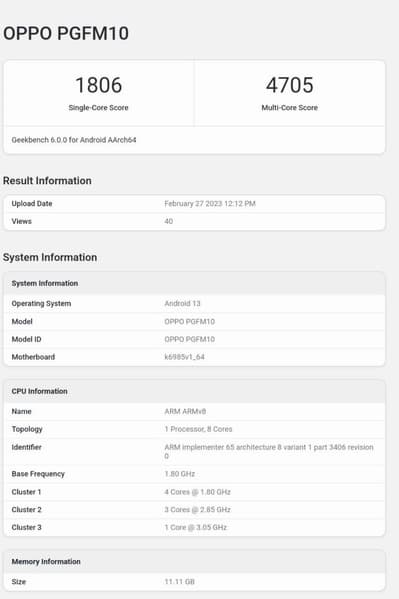 Слухи приписывали этой модели SoC MediaTek Dimsnity 9200, и действительно, Oppo Find X6 построен именно на этой платформе. Результаты тестов – 1806 баллов в однопоточном тесте и 4705 баллов в многопоточном. Для сравнения, результат Galaxy S23 Ultra, построенного на SoC Snapdragon 8 Gen 2, – 1962 и 5191 балл соответственно.