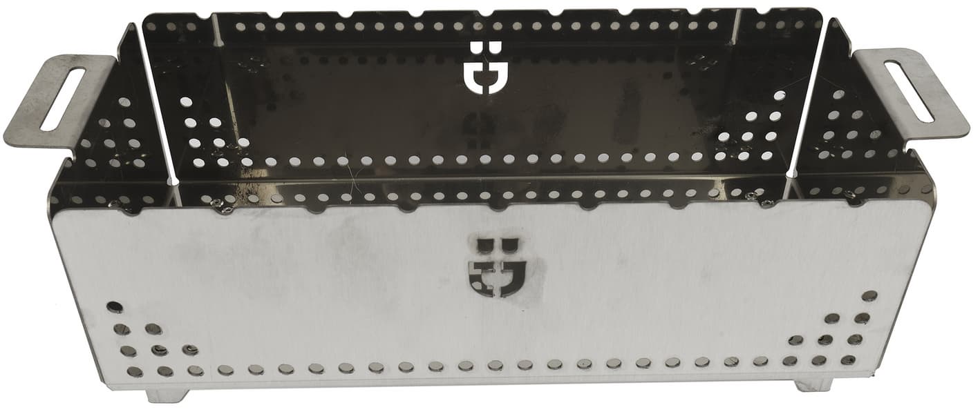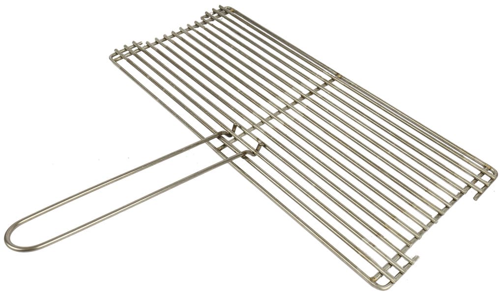 Сверху на гриль устанавливается жарочная решетка, от перемещений вдоль гриля она удерживается, цепляясь нижними прутьями за края наружной коробки, а от поперечных — цепляясь за ее ручки.