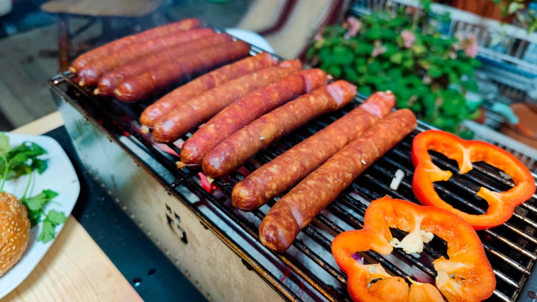 Все мы любим фаст-фуд, увы или ах. Но если все ингредиенты качественные, то что в этом плохого? Мы взяли охотничьи колбаски проверенного производителя, лук, томаты и перцы.