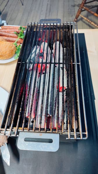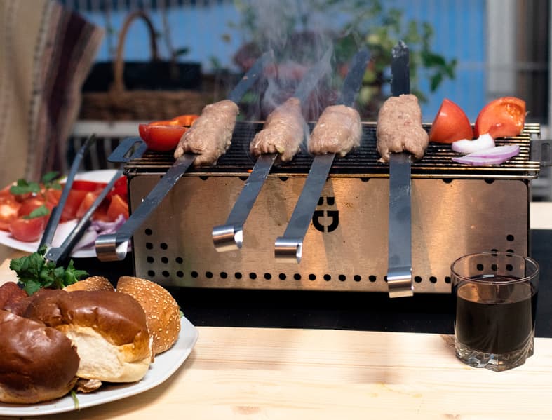 Работать с настольным угольным грилем Buddy нам понравилось. Легко, приятно, не требует специальных кулинарных навыков, каждый может сам контролировать степень подрумянивания и количество еды — очень напоминает выезды на шашлыки с родителями в детстве, только безопаснее, удобнее, аккуратнее и прямо на столе.
