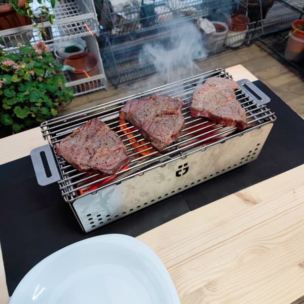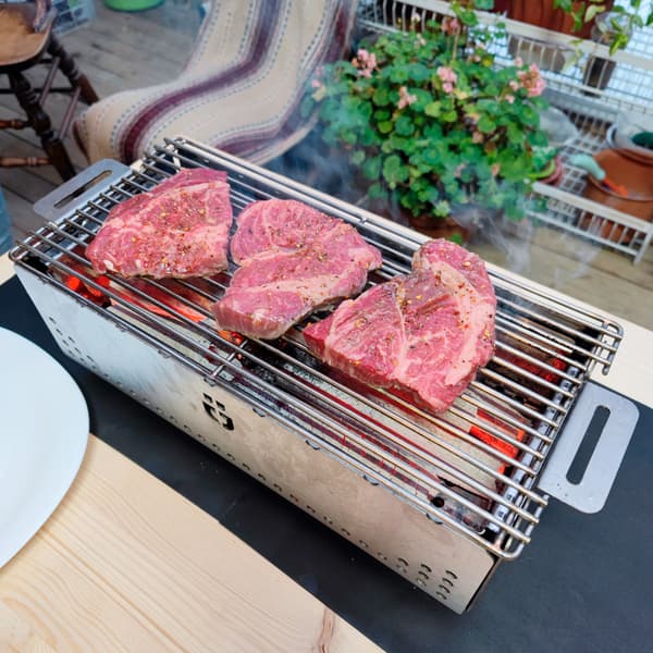 В качестве практических тестов мы выбрали самые классические блюда, которые приходят в голову, когда представляешь себе семью или дружную компанию, собравшуюся вокруг настольного угольного гриля. Должно быть разнообразно, вкусно и очень просто.