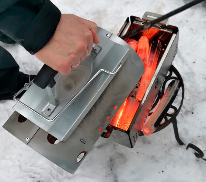 Никаких элементов управления у гриля нет. Отверстия для воздуха не перекрываются никакими заслонками, так что устройство постоянно работает в режиме максимально возможного жара, который, соответственно, зависит только от используемых углей и их количества.