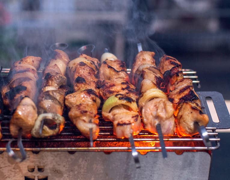 Шашлыки на комплектных шампурах можно жарить прямо над углями, без решетки.