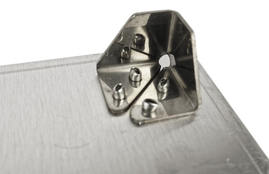 На дне внешней коробки находятся четыре аккуратные металлические ножки, прикрепленные к корпусу с помощью заклепок. Правильное решение: винты только усложнили бы конструкцию.