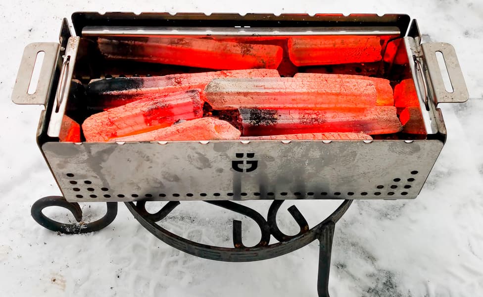 Нас для тестирования снабдили трубчатым прессованным углем Kamado, который мы считаем одним из лучших образцов покупных углей (хоть и недешевым).