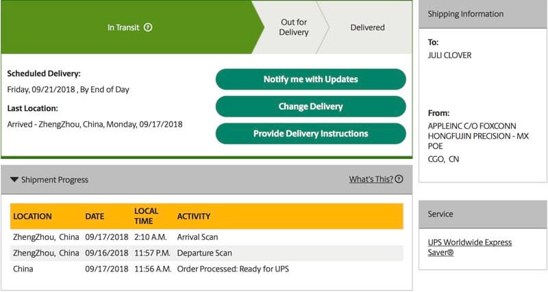Об этом свидетельствуют данные сервиса отслеживания заказов в США. Статус заказов пока отмечен как «подготовка к отправке» и вряд ли Apple его изменит до конца недели, когда посылки начнут прибывать к месту назначения. Но покупатели уже сейчас могут проследить перемещение своих заказов.