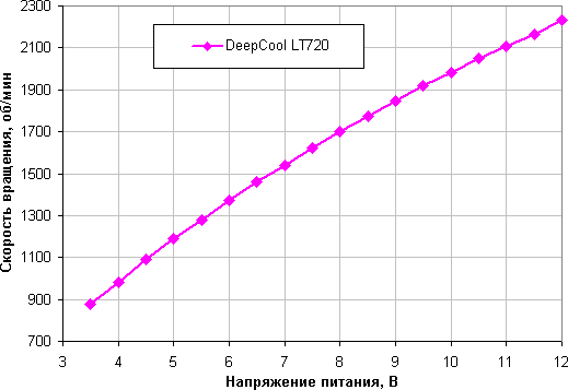 Регулировка с помощью напряжения позволяет получить устойчивое вращение в более узком диапазоне. Вентиляторы останавливаются при снижении напряжения до 3,2—3,3 В и запускаются от 3,3—3,4 В. Вентиляторы вполне допустимо подключать к источнику с напряжением 5 В.