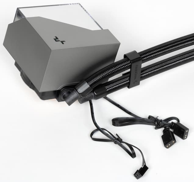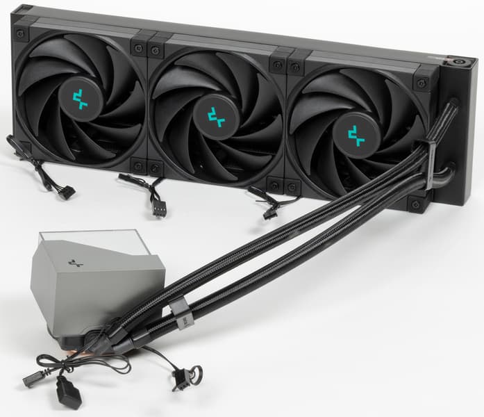 На основе системы жидкостного охлаждения DeepCool LT720 можно создать условно бесшумный компьютер (уровень шума 25 дБА и ниже), оснащенный процессором типа Intel Core i9-7980XE (Intel LGA2066, Skylake-X (HCC)), если потребление процессора под максимальной нагрузкой не будет превышать 285 Вт, а температура внутри корпуса не повысится выше 44 °C. В случае AMD Ryzen 9 5950X при тех же условиях — 162 Вт. AMD Ryzen Threadripper 2990WX — 195 Вт. При снижении температуры охлаждающего воздуха и/или менее жестких требованиях к уровню шума пределы мощности можно немного увеличить. Любители моддинга оценят многоцветную и многозонную статическую или динамическую подсветку помпы, имеющую стандартное трехконтактное подключение. Среди прочих достоинств отметим хорошее качество изготовления и оплетку довольно длинных шлангов. К недостаткам можно отнести резонансный гул вентиляторов, который может появляться в узком диапазоне скоростей вращения.