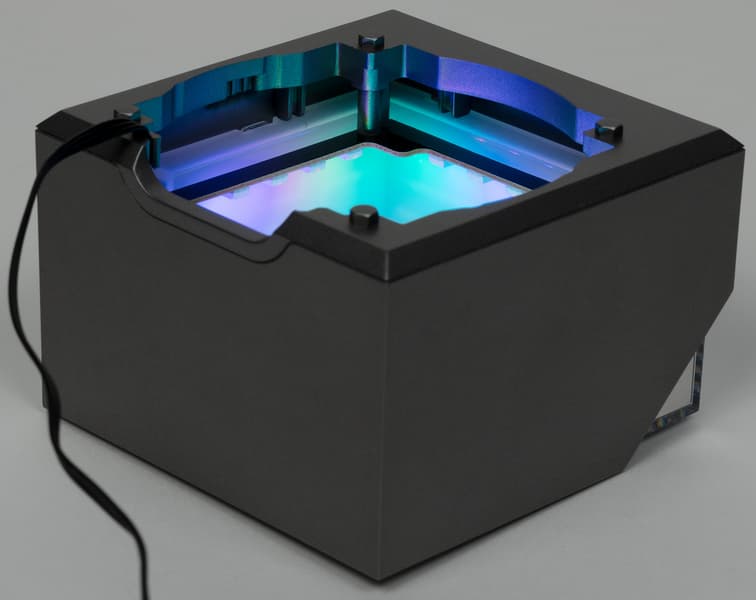 Корпус собственно помпы изготовлен из твердого черного пластика. Сверху на помпе магнитами удерживается кубическая крышка сложной конструкции. Основными ее частями являются внешний кожух из пластика с серо-серебристой поверхностью и вставка из пластика, имеющего свойства полупрозрачного зеркала.