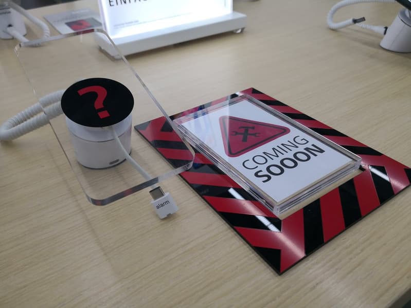 Известный сетевой информатор Роланд Квандт (Roland Quandt) обнаружил подобную «дразнилку» в одном из местных магазинов электроники в Германии. Рядом с другими смартфонами Huawei размещена прозрачная пластиковая пластина с очертаниями смартфона и установлена табличка с надписью «Coming Sooon» (скоро в продаже) и знаком ведущихся работ, вместо традиционной таблички с описанием характеристик и ценой.