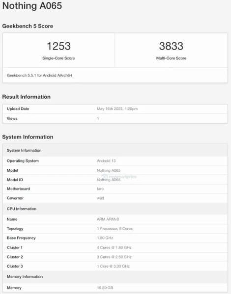В базе данных Geekbench засветился смартфон Nothing A065 – под этим обозначением скрывается Nothing Phone (2). Результат – 1253 балла в однопоточном тесте и 3833 балла в многопоточном. Очевидно, Nothing Phone (2) не будет флагманом, но он заметно быстрее нынешней модели, которая в том же бенчмарке набирает 999 и 2797 баллов.