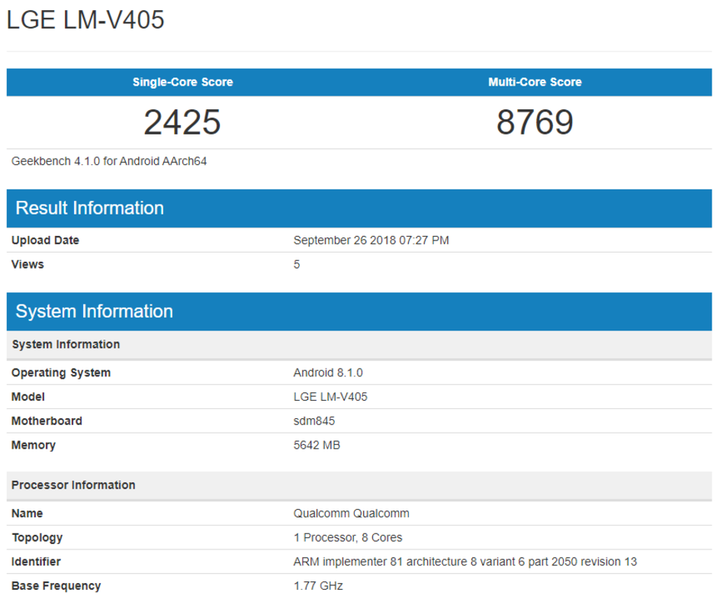 Так, например, смартфон LG V40 ThinQ уже был протестирован в тестовом ПО Geekbench, поэтому теперь мы точно знаем некоторые подробности о его начинке и производительности.