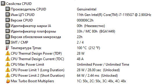 | Процессор | Intel Core i7-1195G7 (4 ядра/8 потоков, 1,3—5,0 ГГц, 12—28 Вт) | |