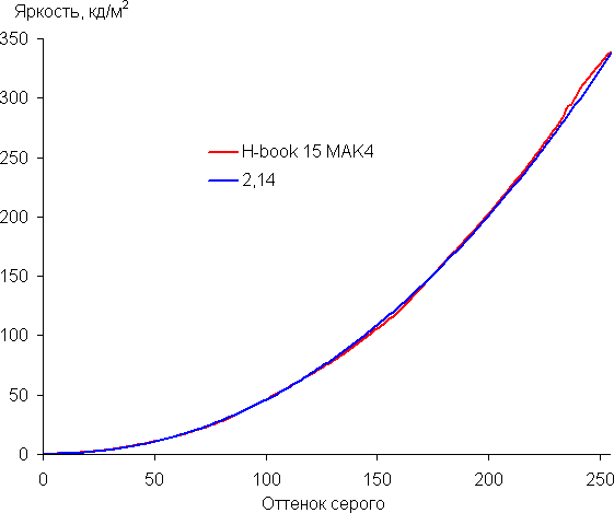 Аппроксимация полученной гамма-кривой дала показатель 2,14, что ниже стандартного значения 2,2, поэтому картинка чуть-чуть высветлена. При этом реальная гамма-кривая немного отклоняется от аппроксимирующей степенной функции: