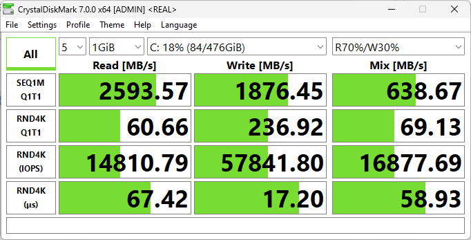 Последние два теста позволяют сказать: накопитель у тестируемого ноутбука не самый быстрый (но, конечно, гораздо быстрее, чем древняя SATA-модель у референсной системы).
