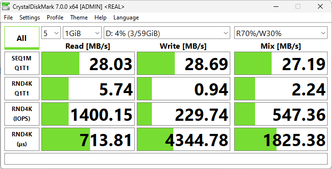 В первом случае процедура заняла 97 секунд, что соответствует средней скорости 25,7 МБ/с, во втором — 100 секунд, или 25 МБ/с. По сравнению с картоводами только что упомянутых ноутбуков получается немного быстрее, причем в обе стороны.