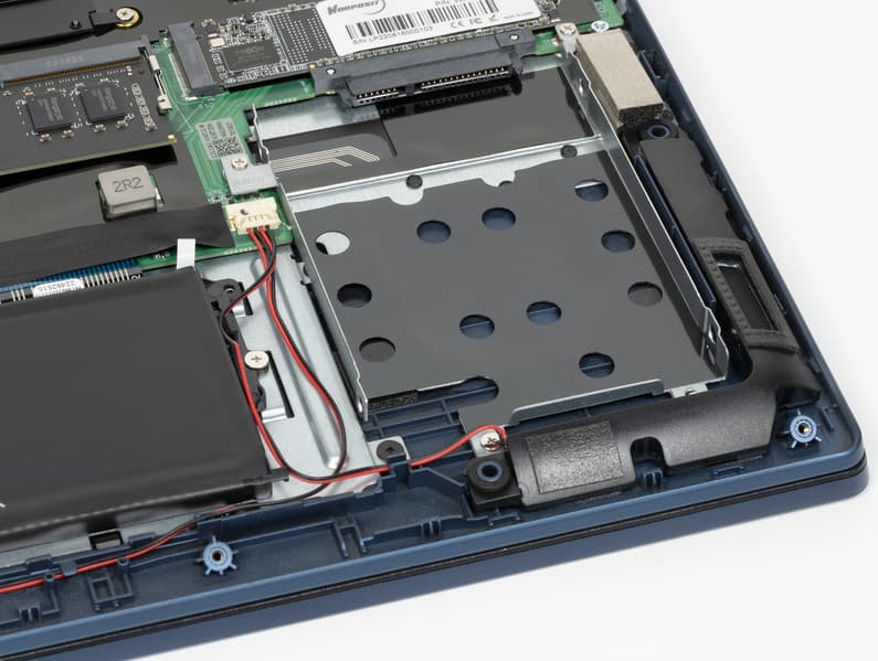 В подобном ноутбуке вряд ли кому-то потребуется больше имеющихся 16 гигабайт ОЗУ, но штатный модуль работает в одноканальном режиме, что не может не сказаться на быстродействии системы, и это нельзя исправить добавлением второй «планки»: ее попросту некуда ставить.