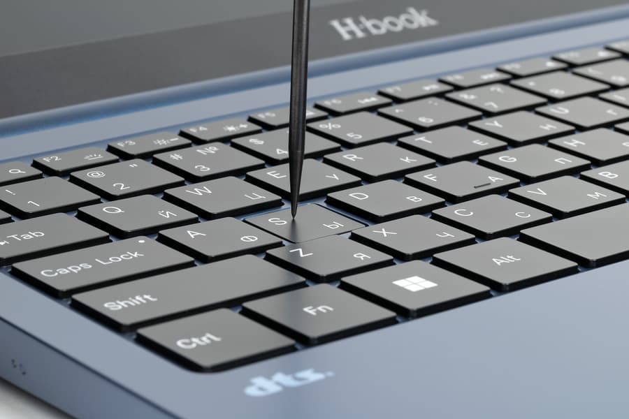 Клавиатура мембранного типа с островным расположением кнопок. Отступы по бокам средние — по 14 мм, за счет этого удалось разместить цифровой блок (но не полноценный, а трехрядный).