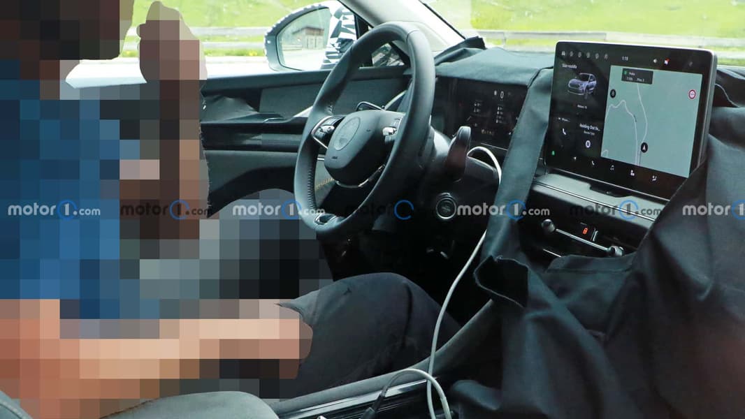 В салоне цифровая приборная панель с экраном 10,25 дюйма и «торчащая», как у обновлённого Golf, медиасистема с большим экраном диагональю 12,9 дюйма. Правда, тут большая панель и в целом автомобиль широкий, так что экран не создаёт эффект телевизора. Также можно заметить новый двухспицевый руль и рычажок управления режимами коробки передач на руле.