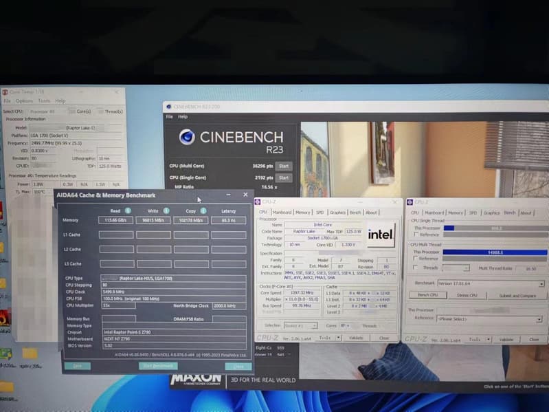в Cinebench R23 процессор набирает 2192 и 36 296 баллов в однопоточном и многопоточном режимах соответственно. В CPU-Z результаты равны 905 и 14 965 баллов.
