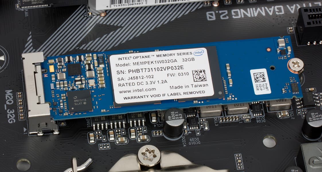 Именно в этот разъем установлен накопитель Intel Optane Memory объемом 32 ГБ, которым комплектуется плата.