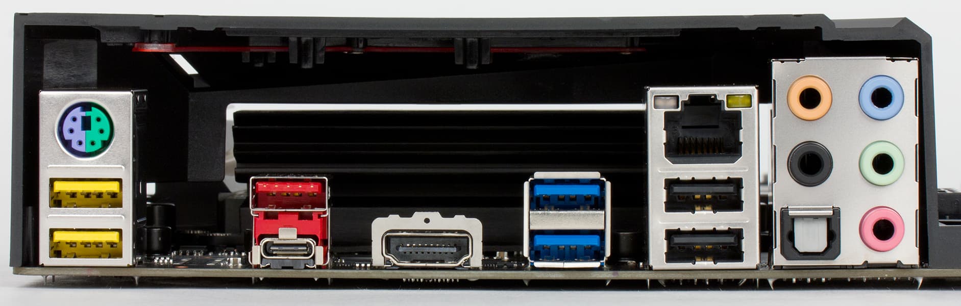 | Разъемы на задней панели | 1 × USB 3.1 (Type-A) 1 × USB 3.1 (Type-С) 4 × USB 3.0 (Type-A) 2 × USB 2.0 1 × HDMI 1 × RJ-45 1 × PS/2 1 × S/PDIF (оптический) 5 аудиоразъемов типа миниджек (3,5 мм) |