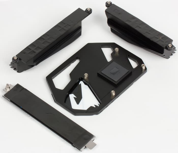 Система охлаждения платы Z370 Aorus Ultra Gaming 2.0-OP состоит из трех радиаторов. Два радиатора расположены по двум смежным сторонам процессорного разъема и предназначены для отвода тепла от элементов регулятора напряжения питания процессора. Еще один радиатор предназначен для охлаждения чипсета.