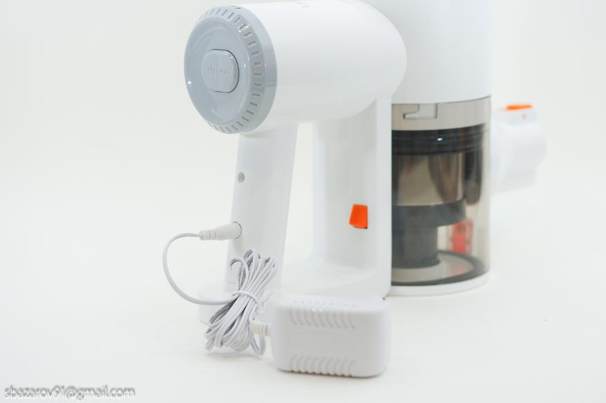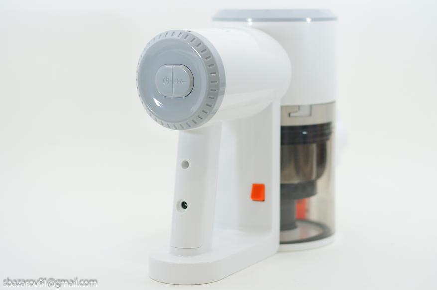 Управление пылесосом осуществляется через кнопку включения на тыльной стороне корпуса, там же происходит смена режима мощности (минимальная и максимальная). Есть верить спецификациям, то сердцем пылесоса является электродвигатель мощность 150Вт с 40000 об/мин.