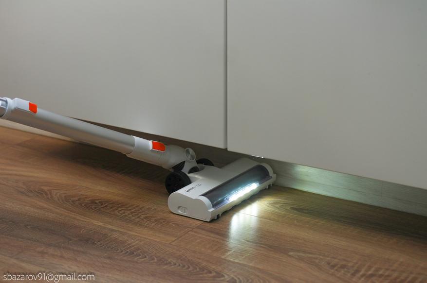 Работа передней подсветки позволяет увидеть весь тот мусор, не доступный нашему взору. А благодаря подвижному шарниру пылесос отлично справляется с низкой мебелью. Однозначно лайк!