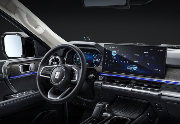 У Tank 400 свой оригинальный салон с цифровой приборной панелью (12,3 дюйма) и медиасистемой с экраном диагональю 16,2 дюйма. Также есть проекционный экран, а спинки заднего сиденья могут складываться, образуя с багажником ровный пол.