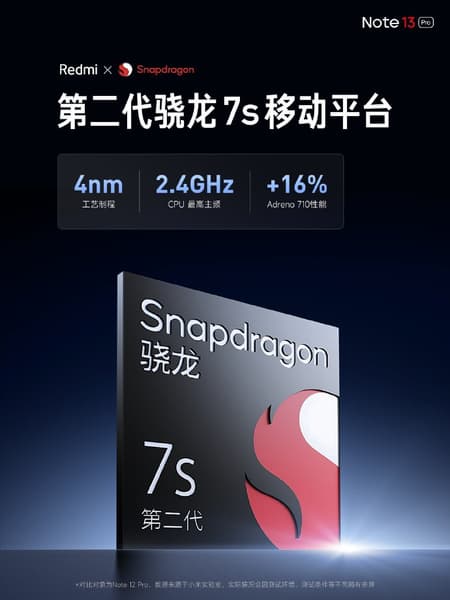 Вместе с флагманским Redmi Note 13 Pro+ компания Redmi сегодня представила модель попроще и подешевле — Redmi Note 13 Pro. У неё другая однокристальная система — Qualcomm Snapdragon 7s Gen 2, но основной модуль главной камеры точно такой же, как в Redmi Note 13 Pro+ — c 200-мегапиксельным сенсором и оптической стабилизацией.