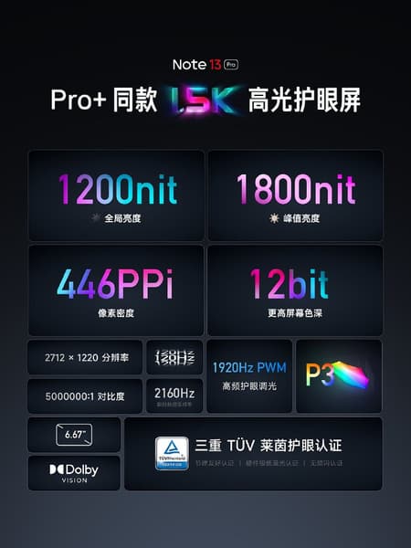 Redmi не рассказывала о Redmi Note 13 Pro так же подробно, как о Redmi Note 13 Pro+, тем не менее ключевые параметры известны. Эта модель получила плоский экран с разрешением 1,5К и максимальной яркостью 1800 кд/кв.м. Его защиту обеспечивает стекло Gorilla Glass Victus.