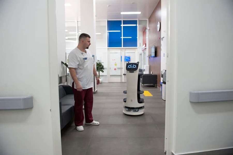 Это милые роботы-курьеры, которые умеют доставлять еду и лекарства, встречать и провожать пациентов, помогать им с транспортировкой вещей и давать советы о здоровье.