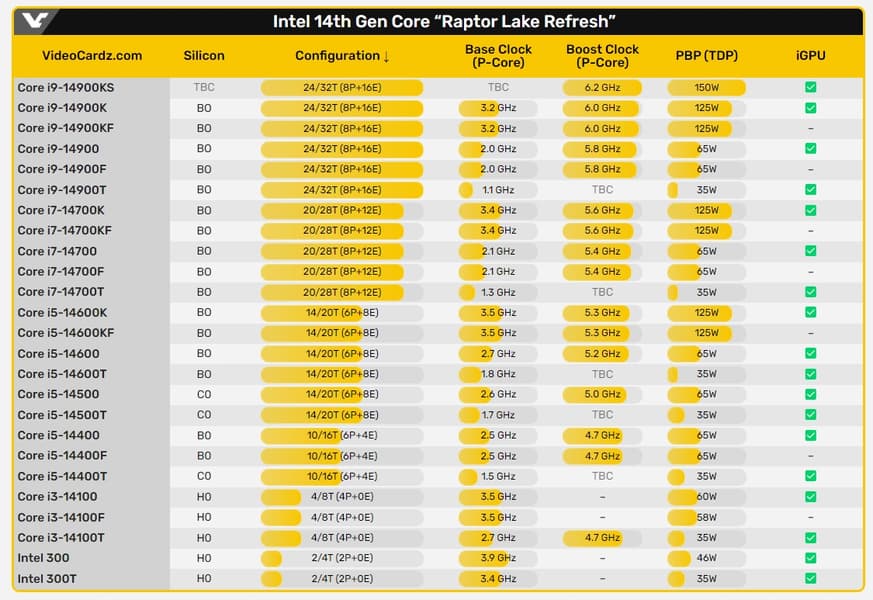 Напомним, пока что представлены были только Core 14xxxK с разблокированным множителем, а большая часть линейки пока недоступна. Нас ждёт множество моделей Core i3, Core i5 и Core i7, а также Intel 300 и 300T, которые можно назвать заменой моделям Pentium. Новые CPU совсем незначительно будут отличаться от аналогичных моделей текущей линейки, так что новое поколение новым будет лишь формально.