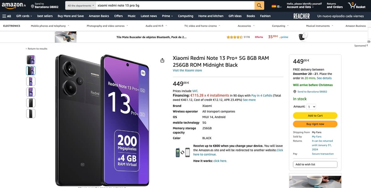 Компания Xiaomi ещё только планирует провести международную презентацию серии смартфонов Redmi Note 13 Pro, а флагманская модель Redmi Note 13 Pro+ уже засветилась в каталогах нескольких региональных подразделений Amazon в Европе, включая испанский, французский и итальянский.