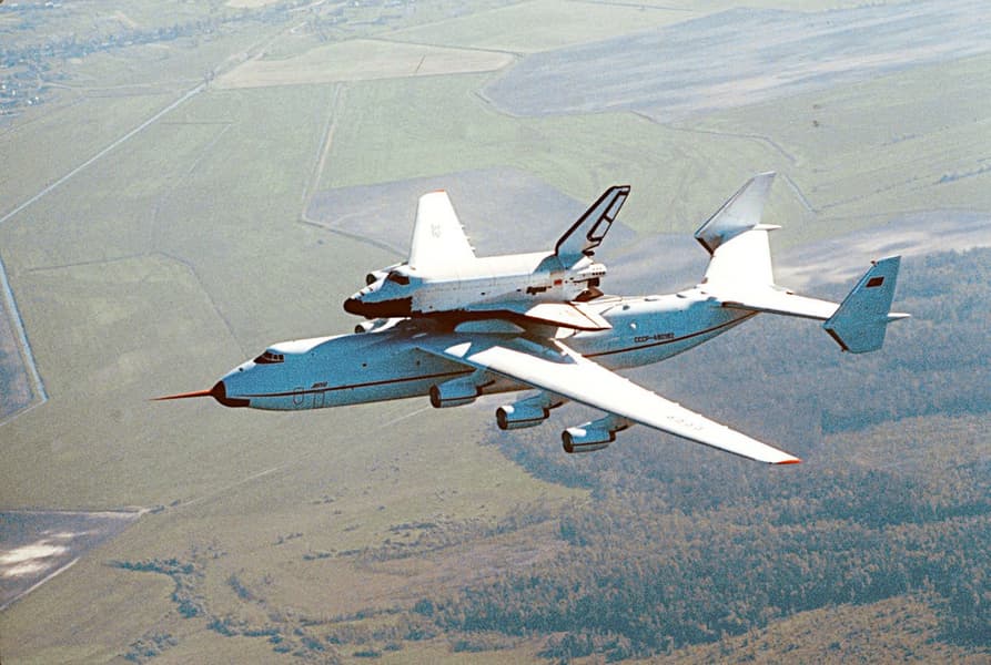 Изначально Ан-225 предполагалось использовать в проекте космического корабля «Буран», но к тому моменту, как Ан-225 был построен, большую часть работ по космическому проекту выполнил самолёт ВМ-Т «Атлант». Тем не менее, Ан-225 «покатал» «Буран» на Парижском авиасалоне в мае 1989 года и на Байконуре в апреле 1991 года.