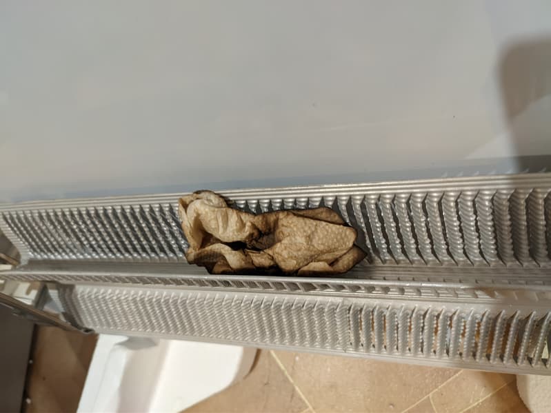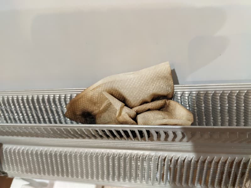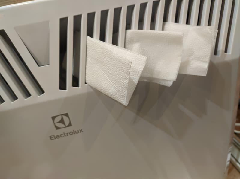 Мы разобрали наши конвекторы, снова вооружились бумажными салфетками и начали бросать их на нагревательные элементы.