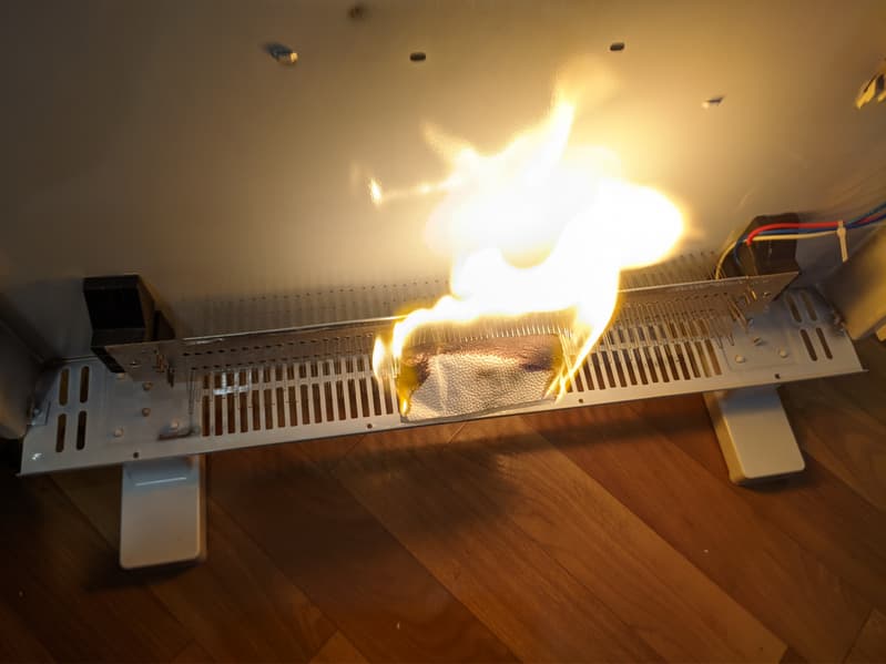 Обогреватель с тэном типа стич поджег бумагу практически мгновенно.
